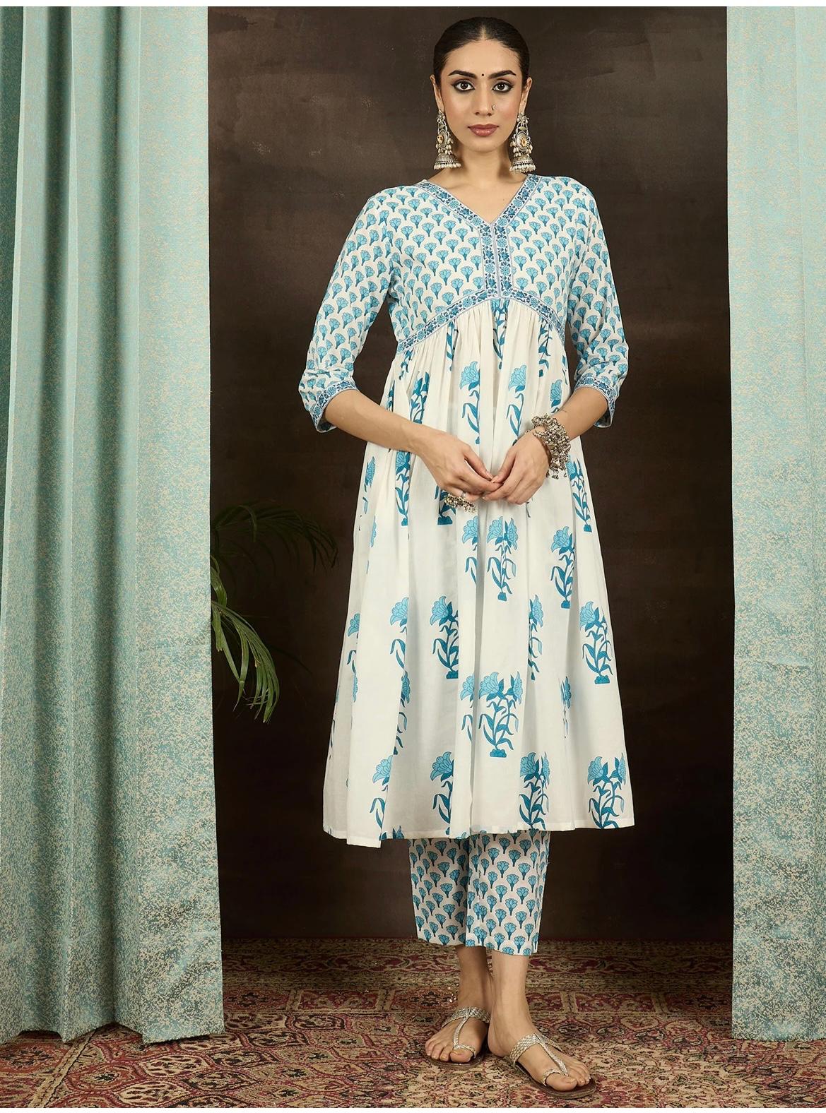 Palkova Blues Cotton Kurta Set